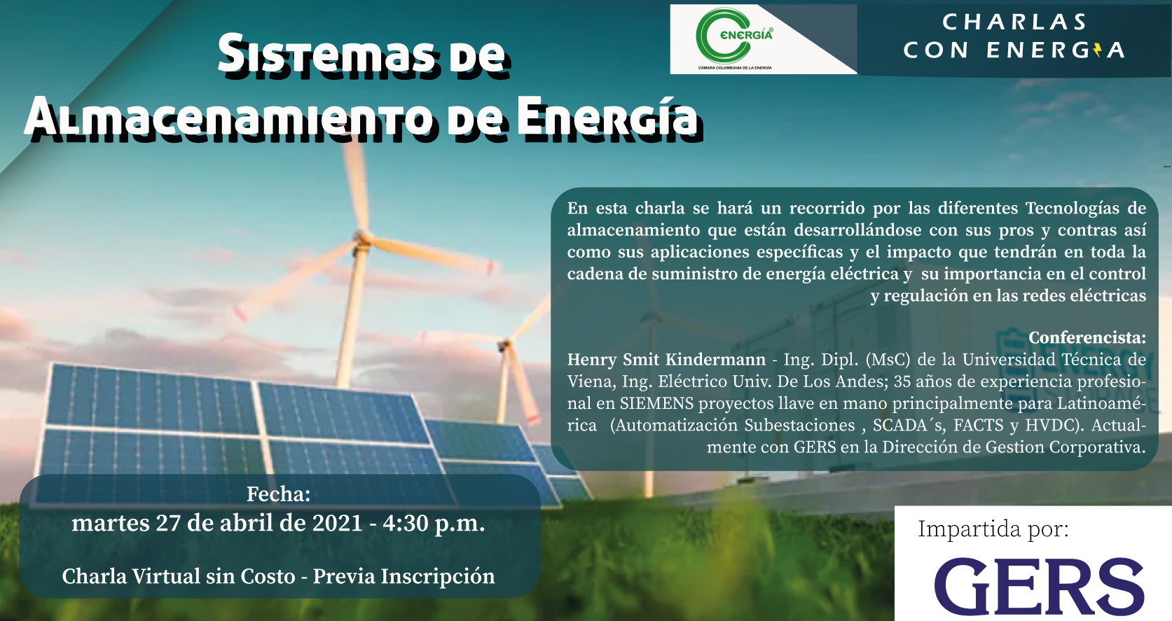 Ing. Dipl. (MsC) de la Universidad Técnica de Viena, Ing. Eléctrico Univ. De Los Andes; 35 años de experiencia profesional en SIEMENS proyectos llave en mano principalmente para Latinoamérica (Automatización Subestaciones , SCADA´s, FACTS y HVDC). Actualmente con GERS en la Dirección de Gestion Corporativa.